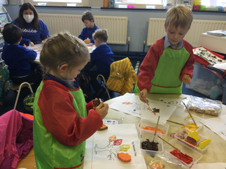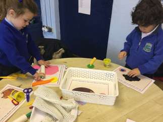 There is a definite autumnal feel to our fine motor stations in Junior Infants this week. We're printing autumn leaves, cutting and sticking autumn trees, using our scissors and pizza cutters to make leaves, pumpkins and scarecrows from Play Doh and even using our scissor scoops to explore an autumn tuff tray. Thanks to everyone who collected leaves, berries and nuts over the weekend.