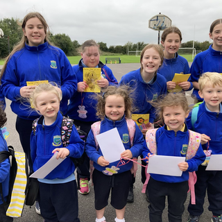 Junior Infants and Rang a Sé met their buddies for the first time today. There was great excitement. The buddied had a card and Buddy Badge for each other. They were so happy to meet each other at last! We look forward to lots of activities together at school