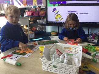 Junior Infants were inspired by the story of the Three Little Pigs this week. We turned our role play area into a construction site complete with tools, blocks, wooden houses and construction straws. We had plenty of fun drawing what we were going to make and writing out lists of the materials we’d need. We also printed block houses in our art station. Our Play Doh station got a bit of a make over too with the addition of some Three Little Pig mats. There were plenty of giggles when we found out that the pigs needed our help to make dungarees. The Three Little Pigs and Big Bad Wolf even featured in our small world station.