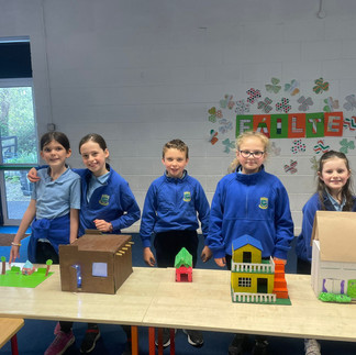 Well done to 2nd class who made fantastic 3D homes last week. They have been learning about different homes around the world. They spoke about their lovely projects to infants and 1st class.