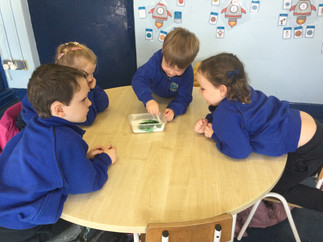 There was some fantastic team work on display in Junior Infants today while we were making slime. We talked about what each ingredient looked and felt like before mixing and how each new ingredient changed the mixture. We learned that the secret ingredient for turning the glue into slime was the Optrex eye bath solution.